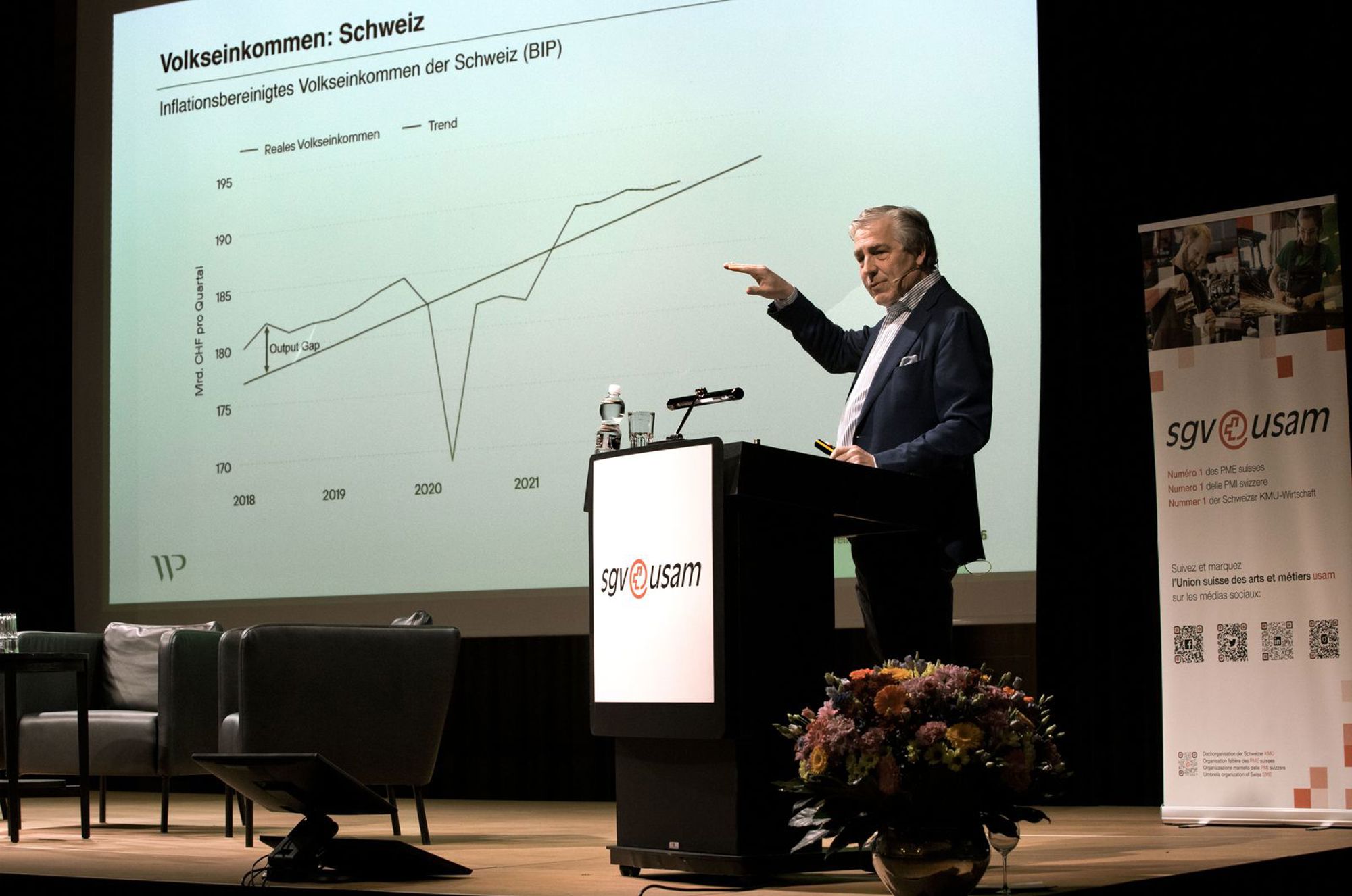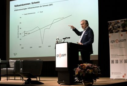 - Sind wir in einer Rezession? Schlitteln wir in eine hinein? Klaus Wellershoff leitete mit der Frage ein. Welche Konsequenzen Verbände daraus ableiten, erläutern ihre Vertreter in einem Podium. sgv Präsident Fabio Regazzi diskutiert über den Sinn der Verbandsarbeit.