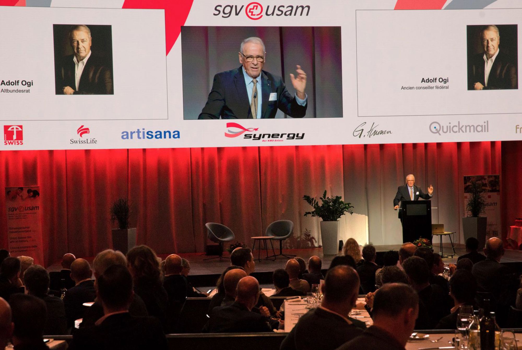 Die synergy 2023 fand am 8. November im Kursaal in Bern statt und setzte sich mit dem Schwerpunkt «Leadership» auseinander. Die Keynote wurde von Alt-Bundesrat Adolph Ogi gehalten. Vorgestellt wurden die KMU Appenzeller Alpenbitter AG sowie die Kuhn-Rikon AG. Der jährlich von der Stiftung Artisana verliehene Gesundheitsförderungspreis ging an die Gamma AG aus Schattdorf im Kanton Uri. Auf dieser Seite finden Sie die komplette Fotogalerie des Anlasses.